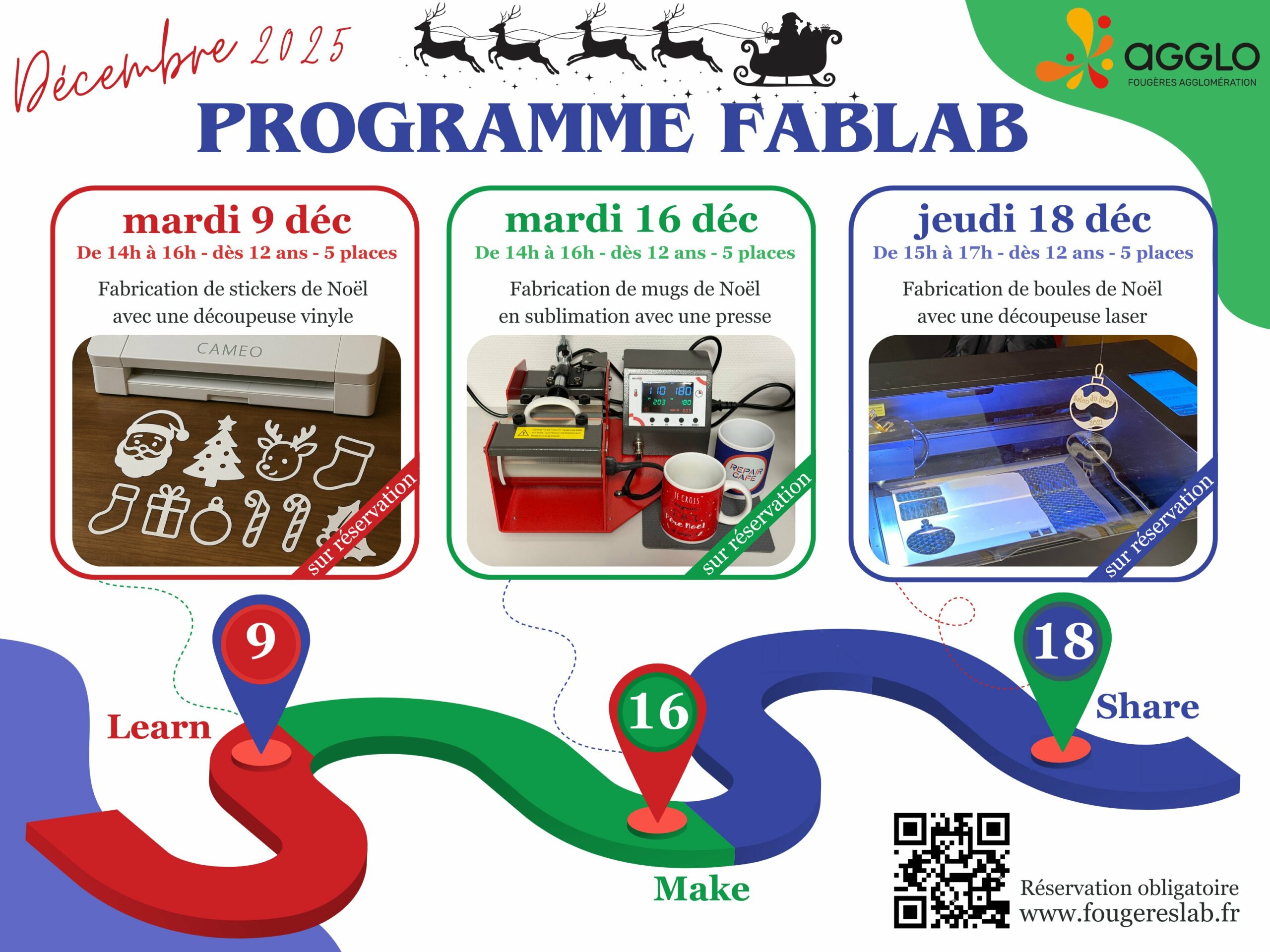 En décembre, notre fablab relance ses animations avec 3 initiations créatives sur le thème tout trouvé… des fêtes de fin d’année !